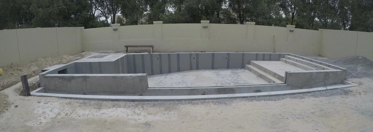 A Monoblock Concrete swimming pool cast in one piece, thus watertight and resistant.